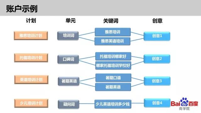 账户结构的分层是为了对整体推广进行划分,目的是方便后期的管理及优化。